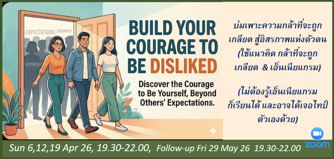 - เรียนคืนวันอาทิตย์ 2, 12, 19 เม.ย. 2569 เวลา 19.30 – 22.00 + ติดตามผล วันศุกร์ 29 พ.ค. 69 เวลา 19.30 – 22.00